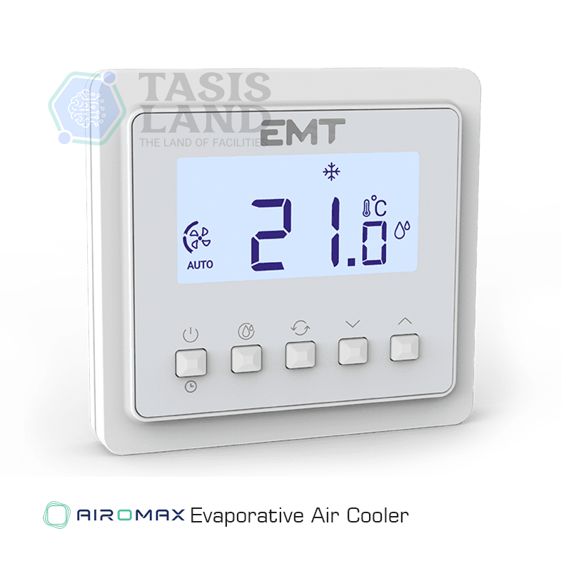 ترموستات هوشمند کولر آبی آیرومکس یکی دیگر از مزایای رقابتی این دستگاه به حساب می آید. صفحه نمایشگر تمام دیجیتال LCD ، قابلیت تنظیم دما از 16 الی 32 درجه سانتیگراد، دارای کنترل رادیویی، قابلیت نصب بر روی دیوار، قابلیت کنترل به صورت لمسی با بدنه پلاستیکی مقاوم و ارتباط با برد دستگاه به روش PLC ازدیگر قابلیت های این دستگاه می باشد.